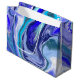 Bolsa de presente de chá de fraldas ou de arte fluida de mármore azul e branco.