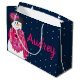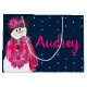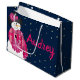 Sacola Para Presentes Grande Azul Escuro com Neve Rosa