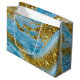 Sacola Para Presentes Grande Azul, Marble e Folha de Ouro