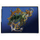 Uma tartaruga marinha verde nadando por uma roda, corda e uma âncora. Tatuagem estilo arte.