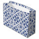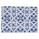 Este produto tem um design intricado com fundo azul escuro e padrões ornamentais brancos. O design lembra os estilos tradicionais de cerâmica ou porcelana, que podem interessar a quem aprecia a estética clássica ou vintage.