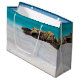 Saco de presentes com uma bela fotografia. Uma praia branca arenosa, com um surf gentil. A água turquesa tropical rodeia uma rocha agitada.