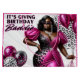 Elevem a vossa celebração com a nossa poster "It's Giving Birthday Baddie", que apresenta uma design ousada inspirada por uma africana americana confiante num vestido de vidro rosa quente com manchas-leopardo brancas e pretas, detalhes prateados e tons de na moda. 🎉 Perfeito para aniversários e decorações de festas. 📸 ©2025 Miss Sassy Party Designs.
