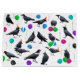 Corvos negros com chapéus coloridos e balões com bolsa de presente de aniversário colorida.