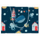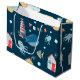 Um saco de presente náutico com tema balístico, com baleia, farol e polvo. Perfeito para aniversários ou chás de fraldas.
