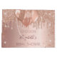 Uma bolsa de presente para um chá de lingerie glamoroso. Um fundo rosa dourado, rosa com gotas de brilho falsas, visual de tinta pingando e balões. O texto: O nome é escrito em rosa dourado escuro com um estilo de letra manuscrita moderna. Personalize e adicione uma data e nome.