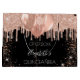 Um saco de presente para uma Quinceañera glamourosa, festa de aniversário 15. Um fundo preto com pingos de ouro rosa, aparência de pingar tinta e balões. O texto: O nome é escrito com um moderno script de estilo escrito à mão. Personalize e adicione uma data e um nome.