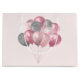 Saco de presentes com uma ilustração de um monte de balões em cores de cinza rosa e prateada.
