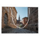 Fotografia da igreja "Rua. Stephan" vista da rua cobblestone "Pfarrgasse" na antiga cidade de Bamberg, Alemanha.