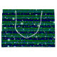 Sacola Para Presentes Grande Bandas verdes azuis com estrelas e gotas de chuva