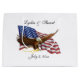Uma bandeira dos Estados Unidos e uma águia careca voadora. Adicione nomes e data do seu casamento ou evento.
