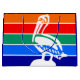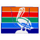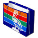 Gift Bag com um design com a bandeira da Rua. Petersburgo, Flórida. Uma bandeira com faixas laranja, vermelha, verde, azul e azul marinho com um símbolo pelicano branco