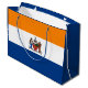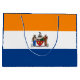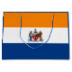 Gift Bag com a bandeira de Albany, Nova Iorque. Uma bandeira laranja, branca e azul com o emblema da cidade no centro