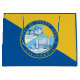 Gift Bag com a bandeira dos Papais noeis Ana, Califórnia. Uma bandeira amarela e azul com o selo da cidade no centro