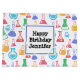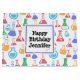 Saco de presentes com um padrão divertido e colorido. Cientista pesquisador vibe com bicos e frascos de diferentes formas e tamanhos em cores brilhantes e felizes.