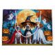 Uma cena divertida de Halloween, com um cachorrinho malicioso a espreitar-se de uma abóbora esculpida, rodeada por vibrações de outono assustadoras. Com um charme viscoso e cores de outono, é o toque perfeito de humor para a estação.
