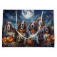 Libere o espírito assustador com esta design sombria do Dia das Bruxas apresentando um bando de cachorros sob um céu escuro e iluminado, cercado por morcegos voadores e abóboras brilhantes. Perfeito para aqueles que amam um toque de diversão terrível com seus amigos peludos!