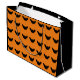 Gift Bag do Partido de Grande Tamanho com design de trabalho de arte de Bat Negro pelo TheFabricSeal no Zazzle é um morcego preto bonito e simples com cores de fundo do estilo silhueta de desenho das ilustrações do Dia das Bruxas Laranja e do Halloween Púrpura com os olhos verdes do Pico e de laranja da abóbora olhando para amigos e presas e um legal escuro Halloween noturno da aventura, oblins, fantasmas e fantasmas.