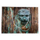 Esta imagem de aproximação mostra um fascinante batedor de porta representando a cabeça de leão, com grão de madeira, listras escuras, nós e lascas de tinta turquesa no fundo, que contribuem lindamente para seu encanto rústico e atração natural. Este design eterno lembra o artesanato do mundo antigo e adiciona um toque de calor e caráter a qualquer decor. A tinta desbotada na madeira melhora esse efeito criando um olhar texturizado e em camadas que evoca a história e histórias contidas em suas fibras. Tal design introduz um senso de natureza e tranquilidade. Com seus tons de terra e o sentimento autêntico, esse tipo de sotaque doméstico e vivo transforma seu espaço em um retiro sereno, combinando elementos naturais e estética.
