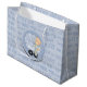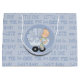 Saco de presente de bebê ou chá de fraldas novo em azul com um bebê doce em um buggy azul no fundo do texto com as palavras amor de bebê fofo etc. Sacos de presente de Ricaso buggy de www.digiwebstudio.com / www.cherylseslardesigns.com
