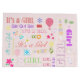 Uma bela composição feita de várias fontes coloridas e pequenos elementos para dar boas vindas a uma nova menina.