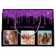Para um aniversário de 50 anos (ou qualquer idade). Um fundo preto elegante. Com púrpura de brilho, pintura pingando aparência. Personalize e adicione 3 das suas próprias fotos, uma data, nome e idade 50. Texto roxo. O nome é escrito com um moderno estilo escrito à mão.