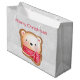 Sacola Para Presentes Grande Belo Urso Enfrentado Vermelho Scarf e Cheeks Rosad