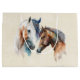 Saco de presentes com um belo desenho de aquarela. Com um par de cavalos, castanho e branco. Cabeça e pescoço visíveis com tinta pingando na base do pescoço. Vírus sudoeste.