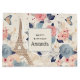 Saco de presentes com um adorável padrão temático francês. Flores bonito, torre Eiffel e borboletas. As cores incluem rosa, azul, pêssego e creme.