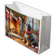 Sacola Para Presentes Grande Bernese Mountain Fireplace with Christmas Lights