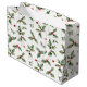 Sacola Para Presentes Grande Berries vermelhos de aquarela, Mistletoe Folhas Ho