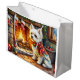 Sacola Para Presentes Grande Bichon Frise Fireplace with Christmas Lights