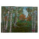 Este design apresenta uma pintura do artista Poste-impressionista romeno Kimon Loghi (1871-1952). Mostra uma floresta com pássaros proeminentes. Há algumas folhas marrons no fundo. Em termos botânicos, uma bétula é uma árvore de madeira folheada e folhada do gênero Betula, que possui um tronco fino, formado por diferentes tons de cinza. Embaixo das árvores há um chão pastoso com algumas flores silvestres vermelhas crescendo. O céu está claro e azul claro.