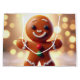 A imagem apresenta um gengibre festivamente decorado, que é o foco central do quadro. O gengibre tem uma expressão alegre. O corpo é adornado com embelezamentos brancos, vermelhos e verdes, particularmente botões vermelhos e verdes na barriga. A figura é posicionada sobre uma camada coberta por neve. A definição de fundo é preenchida com um ouro ou luzes amarelas, criando uma atmosfera quente e de férias. Essas luzes desligam um efeito estrelado ou de boque, fazer que a imagem tenha um aspecto provavelmente desfocado. O humor geral da imagem é comemorativo, possivelmente relacionado à época de férias de inverno.