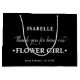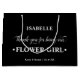 Saco de presente da FLOWER GIRL personalizado com uma paleta a preto e branco. O nome modelo está pronto para você adicionar o nome da florista, assim como os nomes da noiva e noiva e a data do casamento. A obrigado que você escreve diz "Obrigado por ser nossa florista" em uma mistura de escrituras elegantes e tipografia forte e ousada. Se preferir um fundo de cor diferente, clique em 'personalizar' para entrar na ferramenta design e alterá-la, ou sinta-se livre para nos enviar uma mensagem de assistência. Procure na nossa loja cores e tamanhos de alternativo.