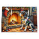 A festive Christmas artwork featuring a loyal Bluetick Coonhound sitting beside a cozy fireplace decorated with stockings and glowing Christmas lights. This heartwarming holiday scene captures the Bluetick Coonhound’s gentle, intelligent nature and love for family, making it ideal for dog lovers and holiday home decor. Celebrate the warmth and joy of the season with this charming pet-inspired artwork.
