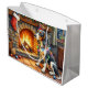 Sacola Para Presentes Grande Bluetick Coonhound Fireplace with Christmas Lights