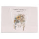 Saco de presentes com um bonito buquê de flores em cores neutras de marrom, pêssego e laranja. Um apanhador de sonhos com penas adiciona um elegante talento místico.