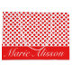Na moda e elegante padrão moderno de Bolinhas vermelhas sobre fundo branco para a retrovisagem minimalista moderna e aparência clássica, esta design é parte da nova coleção de feriados de inverno de 2022. Este design é personalizável e permite que você edite com um nome personalizado e um texto monograma ou uma citação motivacional favorita um dentro de tipografia simples branca com forma geométrica vermelha