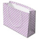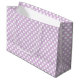 Este saco de presentes de papel de grande tamanho é mostrado em uma lavanda bonita e impressão branca. Personalize este saco-presente ou comprar como está.