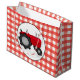 Sacola Para Presentes Grande Bolsa de estilo gingham da festa do trator vermelh