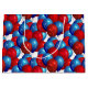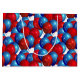 O saco de prenda de papel é mostrado em cor branca com um acabamento brilhante com um impressão de balão azul festivo e vermelho. Tamanho grande mostrado Personalize este saco-presente ou comprar como está.