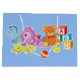 Essas bonecas adoráveis e coloridas estão prontas para jogar! Há um cavalo azul, cachorro roxo, gato amarelo, ursinho de pelúcia, pato de borracha, bola de salada, e cubos ABC. Este design pode ser personalizado ou personalizado adicionando seu próprio texto e imagens.