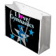 SACOLA PARA PRESENTES GRANDE BONITA DESIGN GINÁSTICA AZUL E PRATA