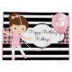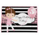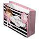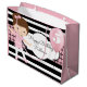 Um saco de presentes super fofo com riscas brancas e pretas ousadas e modernas, um padrão legal de gingham rosa e preto, uma bailarina bonito e personalização de ambos os lados.