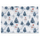 Um bonitinho bonitinho Snowman e árvores de neve saco de presente de Natal com homens de neve a vestir chapéus de Papai Noel vermelhos e árvores cobertas de neve com fundo branco de neve. O texto feliz de Natal em azul pode ser personalizado conforme necessário, mudar para um nome ou outra saudação de acordo com as suas necessidades. Um design bonito para todos os presentes de Natal para o feriado. Um saco festivo divertido para as crianças.