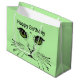 Esta bolsa de presente é verde-claro com um rosto de gato bonito em preto com olhos verdes intensos e bigodes longos. Personalize o texto de aniversário feliz com os modelos na frente e atrás.