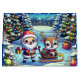 Papais noeis de Cartoon Adoráveis e bolsa de presente de Natal para Reindeer. Papais noeis e renas em uma bonito terra maravilhosa do inverno. Fundo azul com floco de neve.
