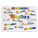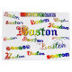 Saco de presente do Boston Rainbow Fonts projetado com diferentes fontes brilhantes do arco-íris em um fundo branco. É um arquivo png para que você possa mudar a cor do plano de fundo. Por celeste@khoncepts.com