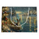 Mergulhe na magia da temporada de férias com esta ilustração lindamente detalhada, mostrando um cachorro orgulhoso sentado em um barco festivamente decorado, deslizando através de um lago de Natal sereno. As luzes cintilantes dos pinheiros próximos refletem sobre a água, lançando um brilho quente e festivo que melhora o conforto ambiente. Os ornamentos pendem do lado do barco, enquanto as lanternas brilhantes iluminam o caminho, criando uma cena que captura a verdadeira essência do calor e alegria natalinos. Esta trabalho de arte nostálgica traz um toque de magia de férias para qualquer espaço, perfeita para aqueles que apreciam o espírito da estação.